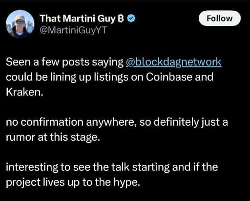 The posts from Crypto Rover and MartiniGuyYT have drawn hundreds of comments and thousands of shares, underscoring just how significant such a listing would be. Both influencers referenced private discussions hinting that BlockDAG could appear among the next assets listed on Kraken and Coinbase. While neither provided evidence, the pattern matches prior leaks that later proved accurate.