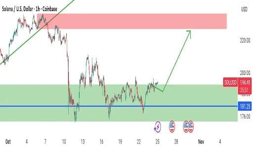 Current price action shows buyers repeatedly defending the $185–$191 area, a firm accumulation zone. Technical analysts see the next resistance level in the $215–$225 area. A close above that level daily might lock in a reversal pattern, paving the way for a possible run to $250–$300 later in the cycle.