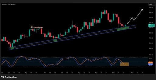 The technical setup is clear. A 3-day golden cross signals improving momentum, and the price just bounced off a long trendline. In a careful Solana price prediction, the first task is to hold higher lows and reclaim recent local highs on stronger spot volume. If that happens, a Solana price prediction near $260 becomes reasonable. If momentum cools, support sits in the mid-$180s and then the low-$170s.