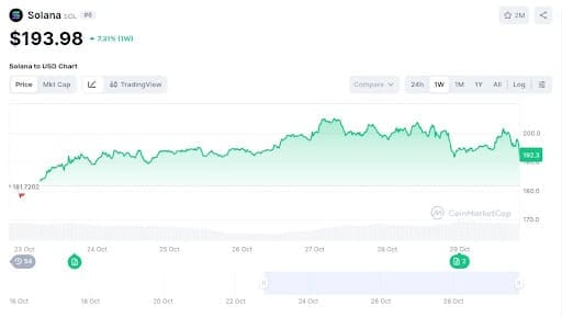 It’s a reverse situation on Solana, where the SOL token challenges its $200 resistance level after a decent 5.77% recovery on the seven-day charts. Solana is edging towards a bullish trend, while the ETH bulls have work to do.