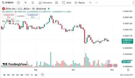 Shiba Inu (SHIB) has been on a steady uptrend, currently selling at $0.00001032 after a significant gain of about 1.25% in the last 24 hours with a trading volume of $202.55 million, up 43.48%.