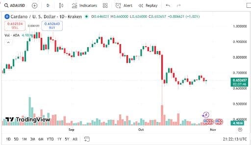 Cardano is currently trading at $0.6525 following a significant loss of about 3.64% in the past 24 hours, with a market cap of $22.94 billion.