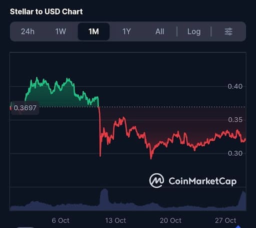 Stellar (XLM) has shown mixed performance lately, bumping into resistance around $0.39 and facing a pull-back that puts pressure on its next move. At the time of writing, XLM was trading at $0.32 with a 12% mark in the red zone for the past month.