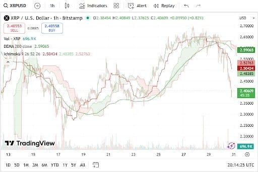 Ripple’s XRP is currently trading at $2.41 after losing a significant 6.69% in the past 24 hours with a market capitalization of $148.03 billion. Despite short-term activity, sentiment appears mixed.