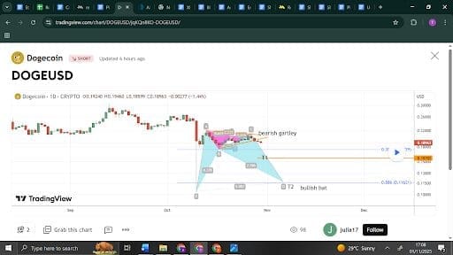 Bulls highlight DOGE reclaiming and testing the $0.20 to $0.21 band in late October as a first step toward a larger push. Price trades near $0.18 to $0.19 today with sharp intraday swings. That keeps the Dogecoin price prediction debate alive: hold $0.18 and re-attack $0.21, or lose that base and revisit the mid-$0.17s before another attempt.