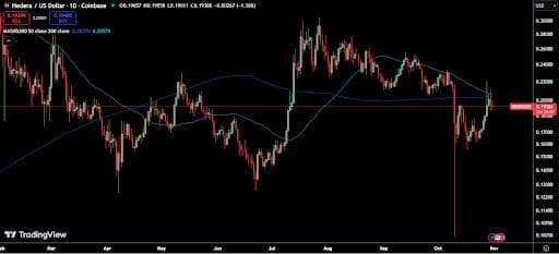 Dogecoin’s repeated failure to break through the $0.2 resistance level and Pi Network’s continued struggles to overturn its bearish momentum have left a lot of investors disappointed. As the market rolls into November, analysts are now backing Hedera (HBAR) to deliver up to 1000% in gains. Already, HBAR is coming off a strong weekly move, and the new spot HBAR ETF launch is boosting attention.