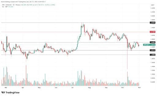 The XRP price chart has now opened the $2.6 range as a strong resistance zone, with price reversing from this level since early October.