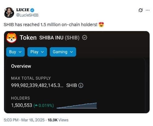 Since its breakout in 2021, Shiba Inu has matured beyond its meme coin appeal, fueled by an ecosystem that includes its Shibarium and expanding ventures in the metaverse, NFTs, and DeFi, with developments continuing to drive an organic and steady increase in its holder base. That said, the growing holder count suggests rising decentralization, a healthy sign for the network’s stability.
