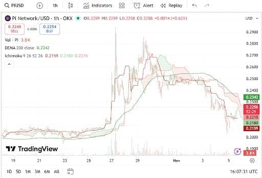 The current price of Pi Coin is $0.2229, representing a 2.02% decrease over the last 24 hours. The market capitalization of the token is $1.85 billion, while the trading volume rose 44.86% to $54.76 million. Increased activity in this regard indicates growing interest among holders in preparation for the highly anticipated mainnet launch, a significant milestone event that may form part of the next major Pi Network price prediction cycle.