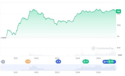 However, over the past week, $SOL’s price has decreased by 17.16%, currently trading at $158.91. The price also represents a 31.15% decline on a monthly level.