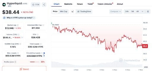 The HYPE price crossed $45 earlier this week. However, the overall market pullback pushed it below $40, but not for long. With a bounce unfolding on lower timeframes, retesting $49, its 30-day high, is the next target for bulls.