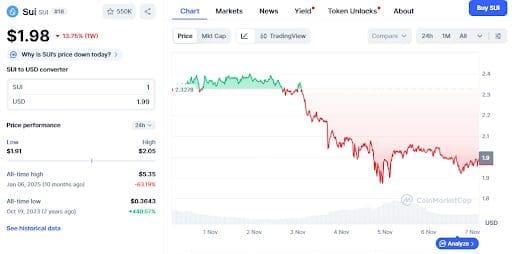 Following a 13% decline this week, the SUI coin fell below $2. Just retesting its all-time high means investors are positioned for more than a 2x gain. However, experts are more optimistic, as evidenced by the many bold price predictions.