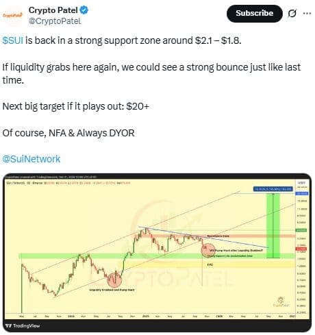 $SUI is back in a strong support zone around $2.1 – $1.8.