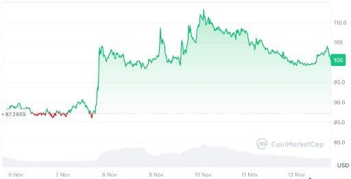 Litecoin (LTC) has rebounded above $100 (at the time of writing), reinforcing support levels last seen before October’s pullback.