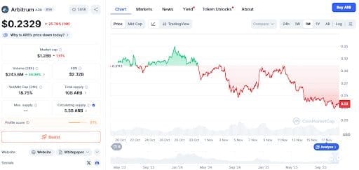 Arbitrum is one of the most technically advanced Layer 2 projects offering fast, cheap transactions and strong developer activity. Despite these achievements, the ARB token has consistently underperformed. It has lost over 25% in the past month amid a market-wide pullback, while $TAP gained consistently.