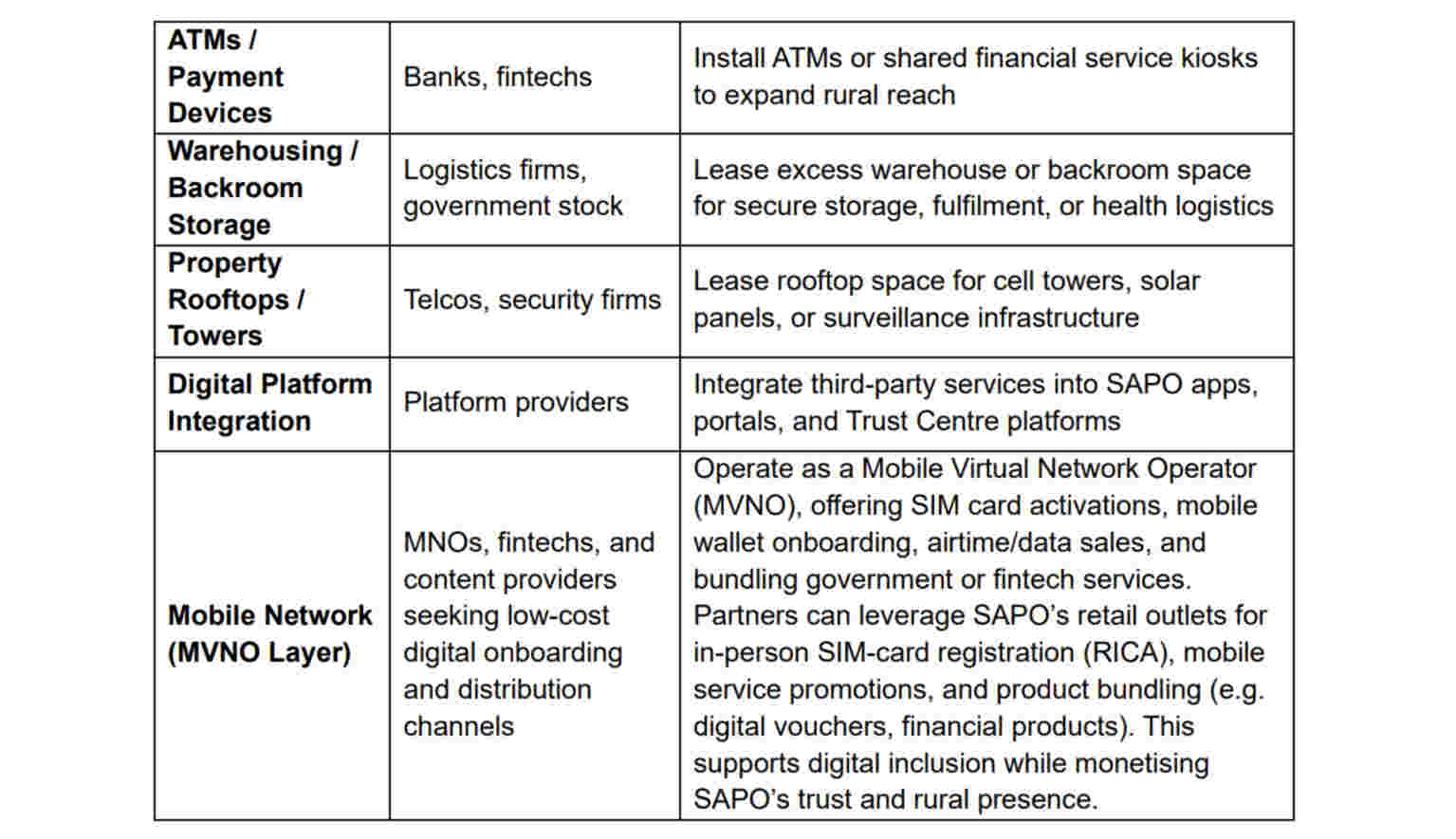The overarching goal is to create a win-win scenario: SAPO gains access to private capital and expertise to enhance its service delivery and digital transformation, while partners can invest for a return, dramatically increase their national reach, and extend their own service portfolios.