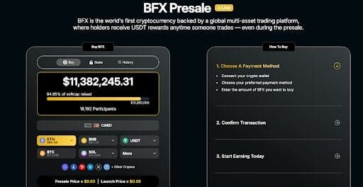 2. BlockchainFX ($BFX): Unified Multi-Asset Trading Platform, $11M Raise