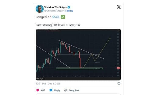 Based on past rallies, the Solana coin price could skyrocket above $200 if the trendline holds. In another tweet, Sheldon The Sniper told his followers he is going long on SOL.