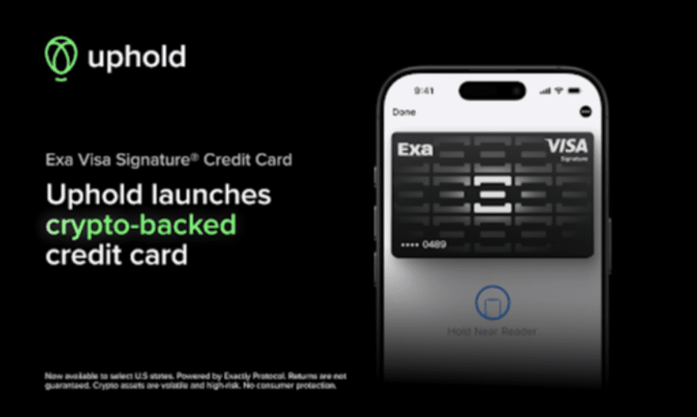 The Exa Card is not available in all U.S. jurisdictions and is issued by a regulated bank. Exactly and Uphold are each a financial technology company and not a bank.