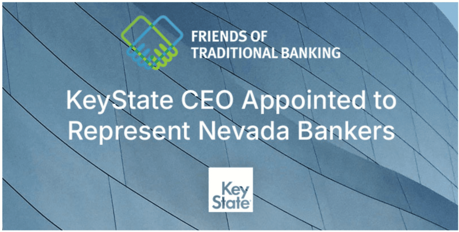 Las Vegas, NV — KeyState today announced that Chief Executive Officer Josh Miller has been appointed to represent Nevada on the Friends of Traditional Banking (FOTB) Nationwide Banker Board, a coalition of financial institutions and industry leaders focused on preserving and strengthening community banking.
