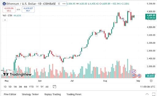 At $4,608.58, Ethereum has increased by 0.72% during the past day. Its trade volume has decreased by 18.37% to $40.56 billion, while its market capitalization is at $556.17 billion. Ethereum continues to lead in decentralized finance, smart contracts and Layer 2 scaling solutions.