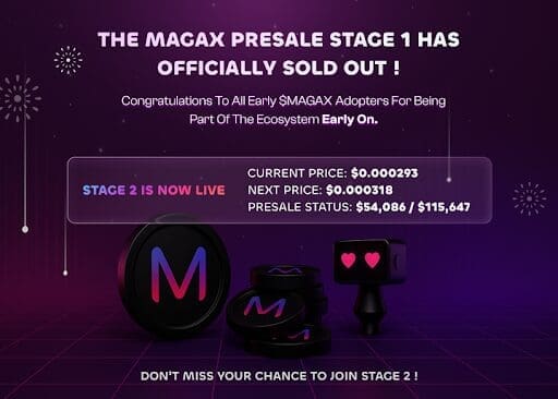 MAGAX’s rise in popularity is also because of the presale that offers early investors a chance to enter before the prices climb higher. Currently in Stage 2, the presale is over 70% complete in a few days, and this proves that there’s strong confidence from investors, creators, Web3 enthusiasts and developers.